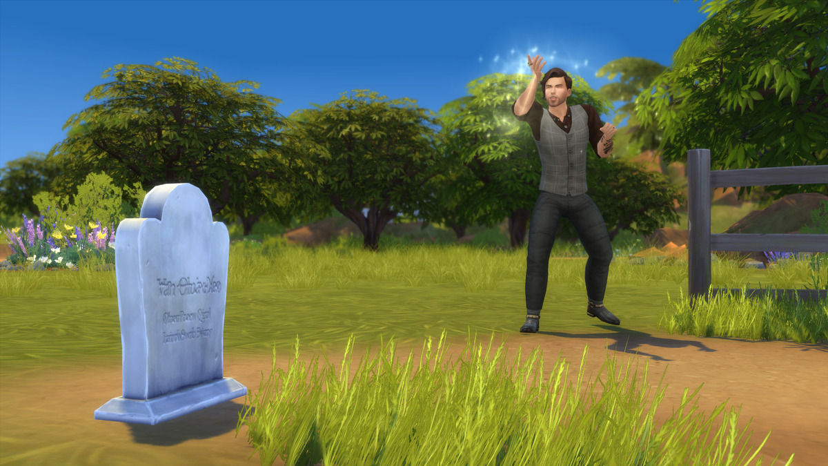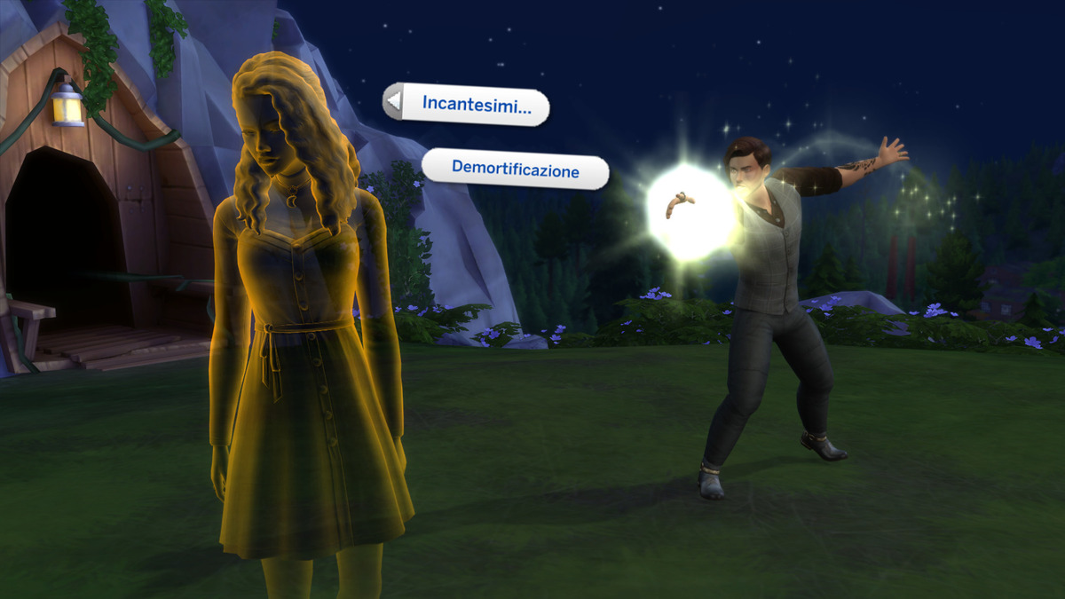 Esiste inoltre un’ulteriore alternativa che è privilegio degli incantatori, disponibili in Regno della Magia. Un Sim che fa uso delle arti magiche è in grado, una volta raggiunto il rango di Accolito, di apprendere un incantesimo della magia indomita denominato Necrochiamata. Eseguirlo su una lapide – premendo su Magia → Necrochiamata – evocherà immediatamente il fantasma che vi riposa. Abbiamo dedicato una guida proprio all’apprendimento degli incantesimi.