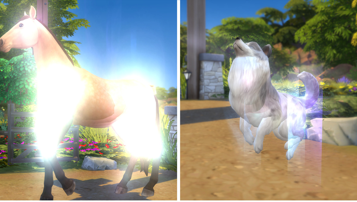 L’ambrosia (vedi sopra) funziona impeccabilmente anche sui nostri amici a quattro zampe, che si tratti di cani, gatti o cavalli. Allo scopo di resuscitare un animale in The Sims 4 è sufficiente cliccare sul piatto di ambrosia luccicante, quindi scegliere Converti in dolcetto per animali (per cani o gatti) o Trasforma in un dolcetto di cavalbrosia (per cavalli). Fatto questo non resta che inserire la pietanza nell’inventario del Sim, cliccare sul fantasma dell’animale e selezionare l’interazione “Dai il dolcetto di Ambrosia/Cavalbrosia”. A pasto completato, un effetto magico sancirà il ritorno del nostro compagno nel mondo dei vivi.
