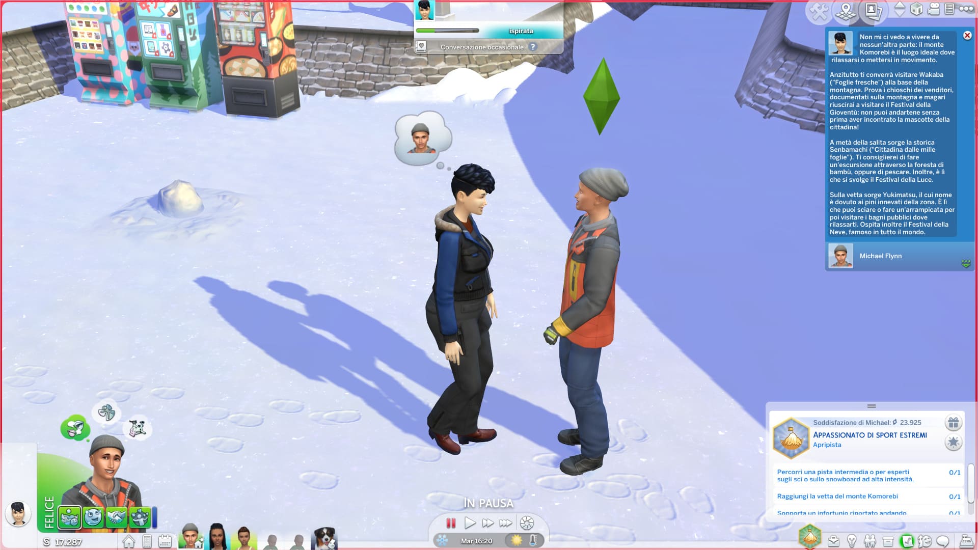 - Può parlare della nuova avventura ed entusiasmarsi per l’amore per il brivido con altri Sims