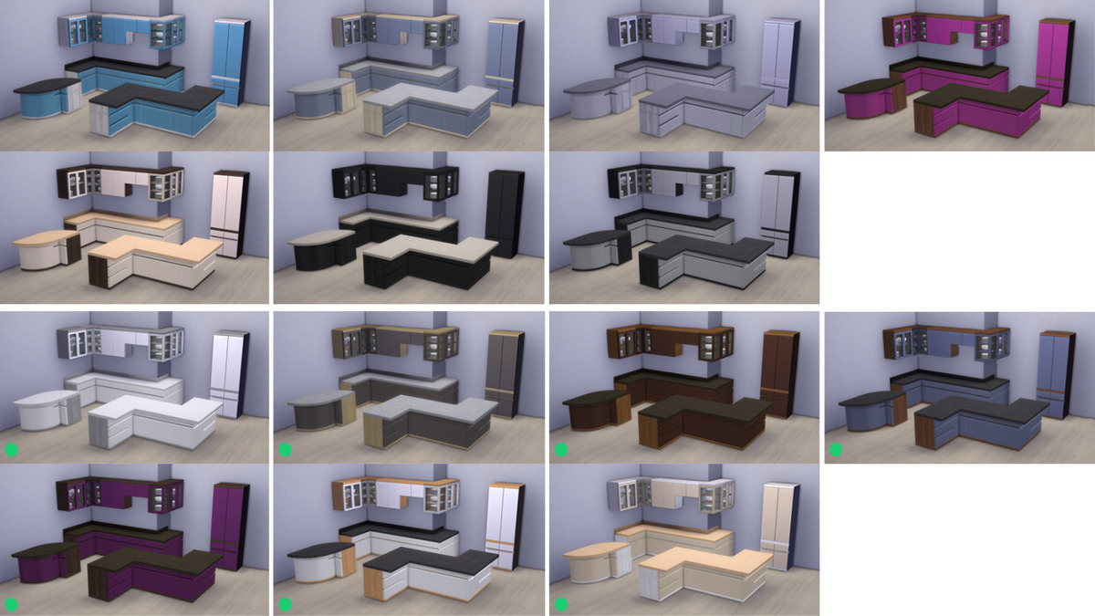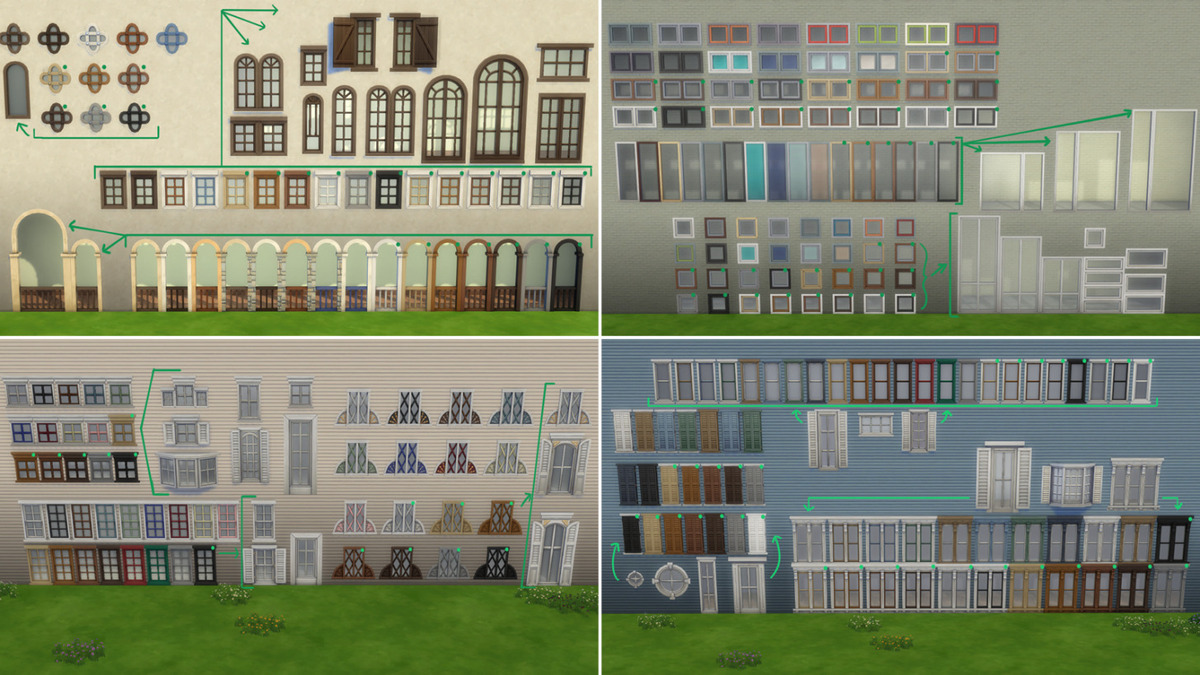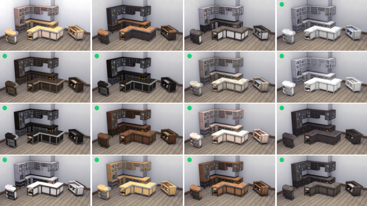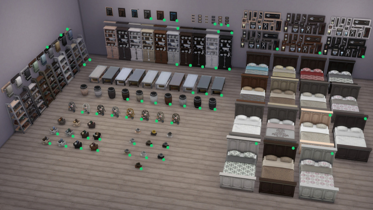 Elencherò i nomi delle risorse, con tanto di immagini, di cui abbiamo introdotto delle varianti. Un ringraziamento speciale a SimGuruBeth per aver fornito queste favolose immagini! Al loro interno noterete delle frecce e dei pallini verdi a indicare le nuove aggiunte.