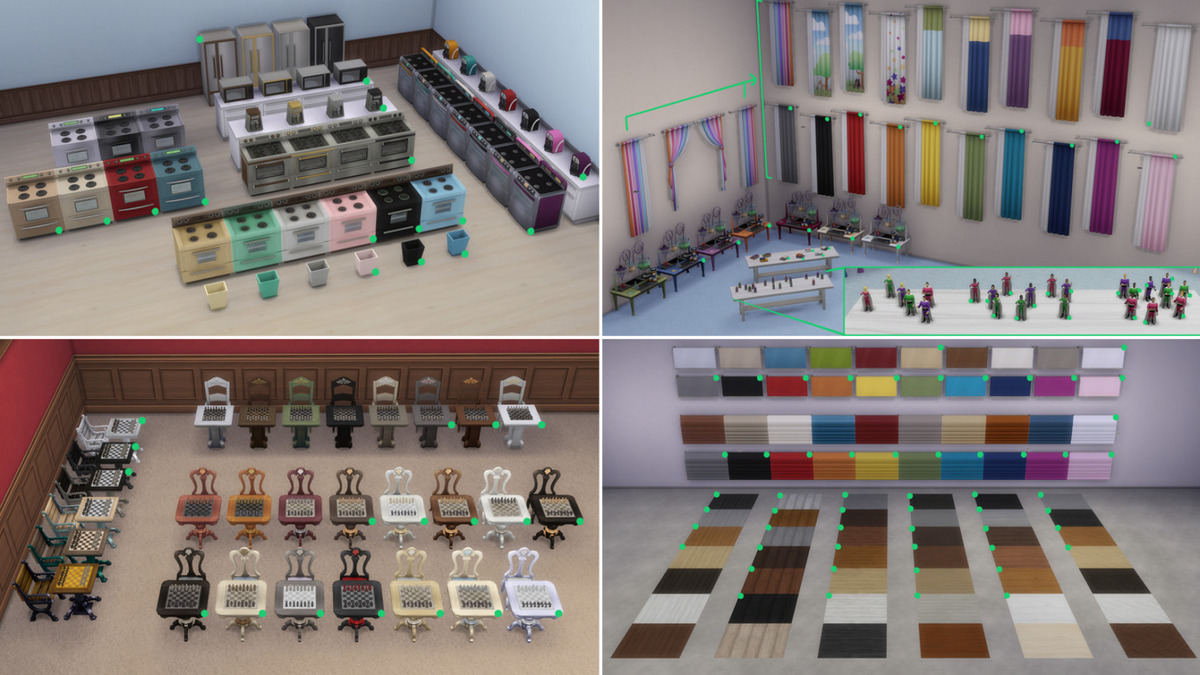 Per questo aggiornamento del gioco, la nostra squadra grafica ha aggiunto circa 1.200 varianti (sì, avete letto bene, circa 1.200 varianti) a 149 oggetti del gioco base nella modalità Costruisci. Lo scopo della squadra grafica è quello di integrare e migliorare queste risorse in modo che i Simmini possano sfruttarle al meglio e abbiano una possibilità di scelta maggiore.