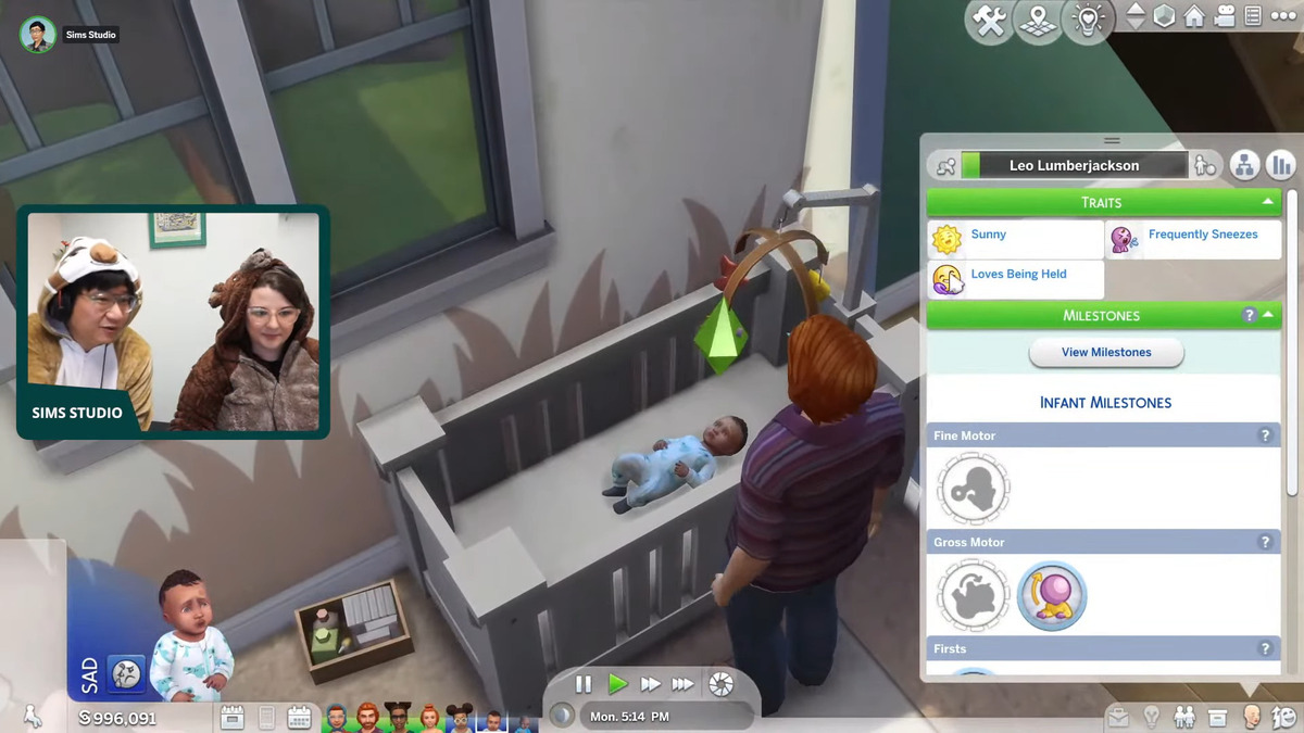 - Per quanto la maggior parte delle migliorie concernenti i neonati sia inclusa nel gioco base, una manciata di aggiunte è esclusiva di Cresciamo Insieme. Con l’espansione installata potremo ad esempio baciare la fronte del neonato o avere a disposizione un più ampio assortimento di tutine da fargli indossare.