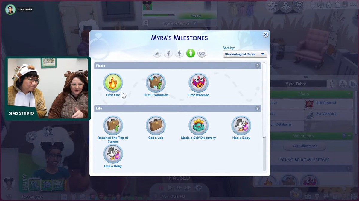 - A partire dalle fasce d’età maggiori, le Pietre Miliari fungono da marcatori delle esperienze di vita del Sim. Alcuni esempi includono il primo fiki-fiki, la nascita di un figlio, il raggiungimento del vertice di una carriera, l’innamoramento, la prima esperienza con un incendio e così via.