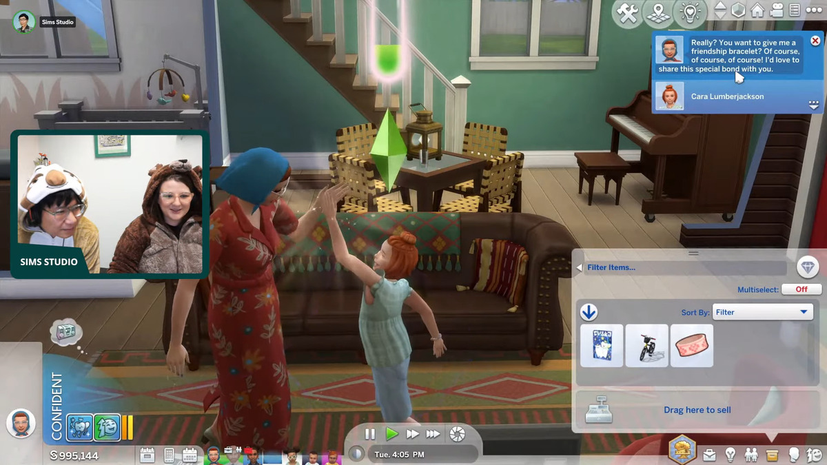- Lo scambio dei bracciali salderà un legame speciale fra i due Sims, tanto che questi potranno eseguire un gesto d’amicizia mentre li indossano. L’azione risulta alquanto solenne, dato che un terzo amico potrebbe ingelosirsi se assistesse alla scena.