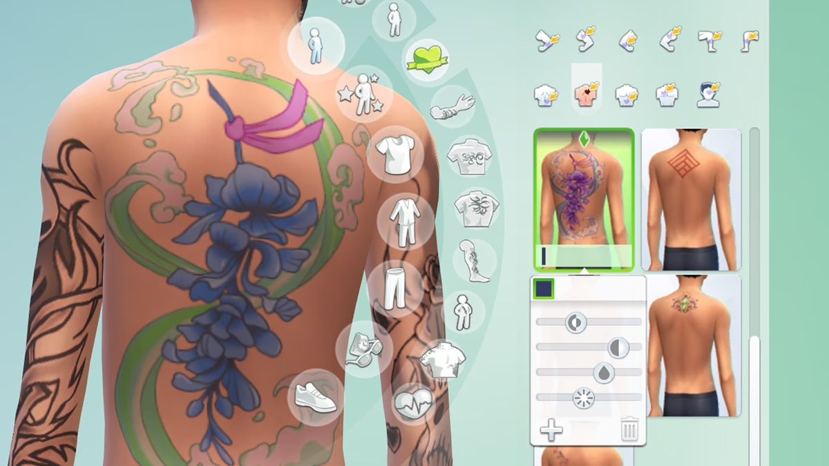 Preparatevi a scatenare l’artista che è in voi con le nuove opzioni di personalizzazione dei tatuaggi! Ora potete ottimizzare tonalità, saturazione, opacità e luminosità delle figure dei tatuaggi servendovi di cursori analoghi a quelli per il trucco. L’inchiostro dei vostri Sims non è mai stato così vivace!