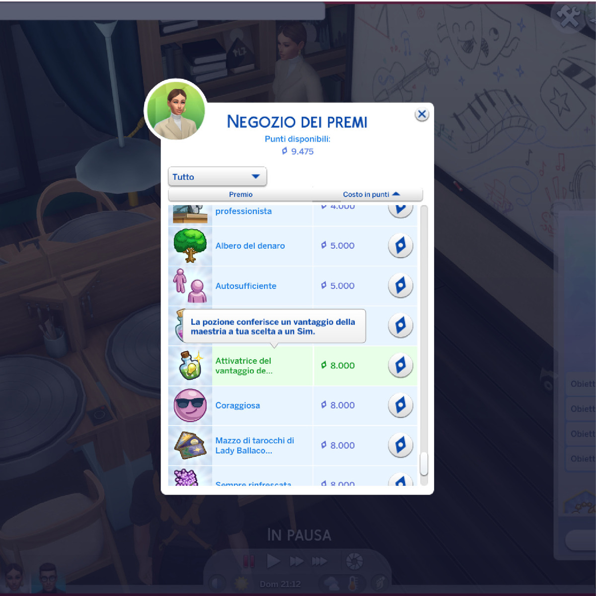 Un Sim può possedere fino a quattro maestrie contemporaneamente. Per tal motivo, potrebbe verificarsi una circostanza in cui si hanno esaurito tutti i posti disponibili per le maestrie e si ha bisogno di fare spazio per accoglierne un’altra. Anche in questo caso è una pozione a venire incontro: Eliminatrice di vantaggi della maestria, che si compra dal negozio dei premi per 100 punti.
