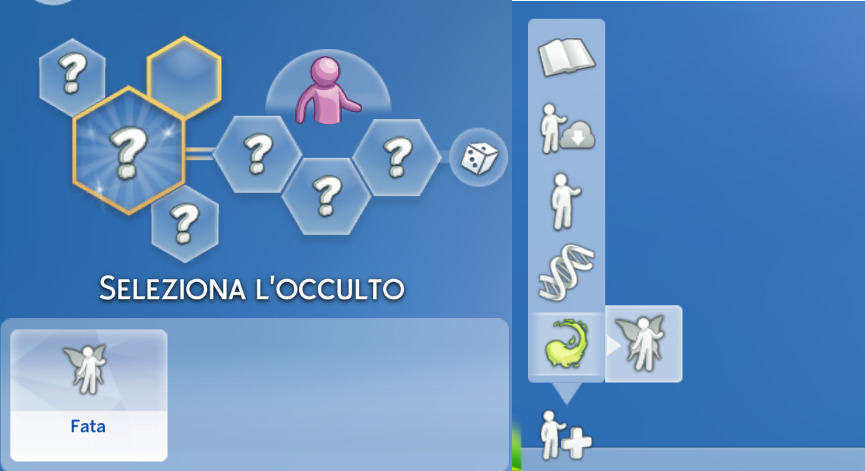 Probabilmente saprete già come si procede: espandete il pulsante per l’aggiunta di un nuovo Sim, cliccate sull’icona relativa agli occulti, quindi scegliete fata. In alternativa, usate il selettore degli occulti (quel pulsante posto sopra le molecole dei tratti) per passare da umano a fata in qualsiasi momento.