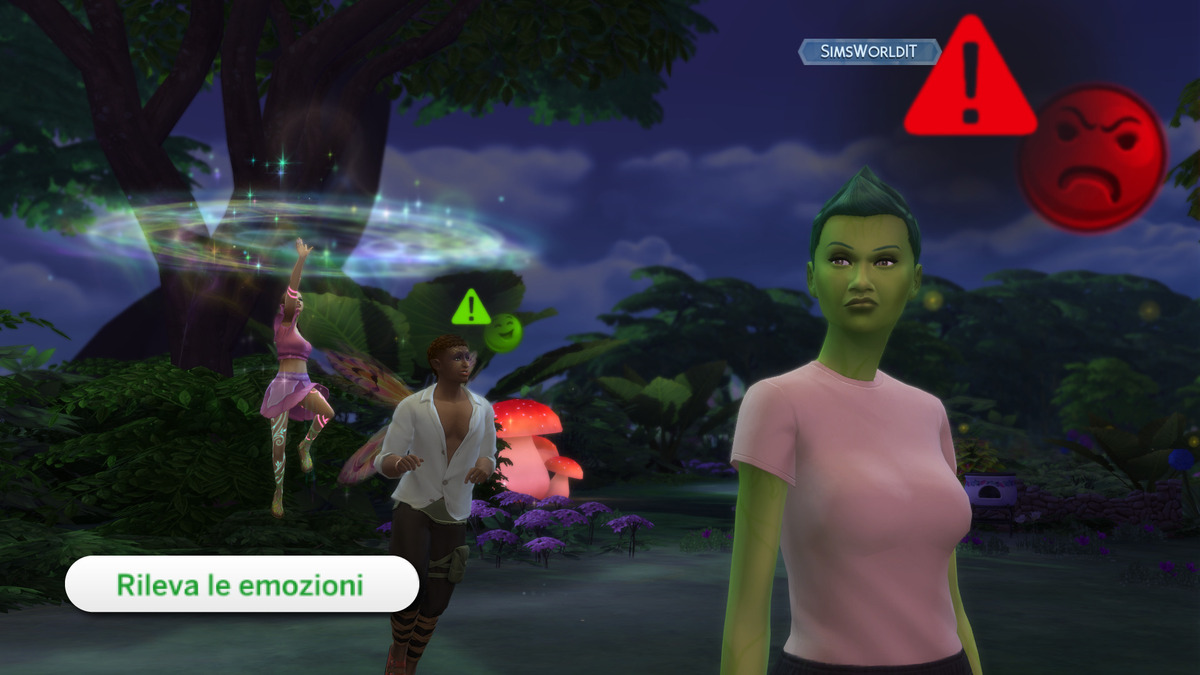 Anche se non è strettamente necessario, prima di assorbire un’emozione è buona pratica recarsi vicino al Sim di riferimento per poi cliccare sulla fata stessa e navigare verso Fata → “Rileva le emozioni“. Quest’abilità permette di scoprire gli stati d’animo di chi si trova nelle vicinanze, segnalate da un’icona diversa per ciascun tipo.