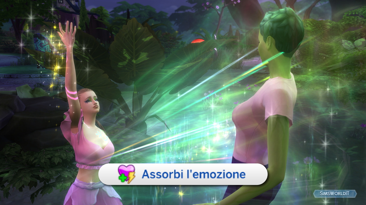 Per quanto non obbligatorio, il metodo senz’altro più divertente per recuperare forza emotiva è assorbire le emozioni degli altri. Per farlo è sufficiente premere su altro Sim (umano o no) e optare per Fata → “Assorbi l’emozione“. Al termine di un gesto condito da effetti speciali, vedremo risalire il livello attuale di forza emotiva. Talvolta l’opzione non risulta selezionabile, probabilmente a causa dell’emozione attuale provata da quel Sim. Non tutti gli stati d’animo si possono infatti assorbire: rientrano fra le eccezioni soddisfatto, posseduto, stordito, addormentato e a disagio.