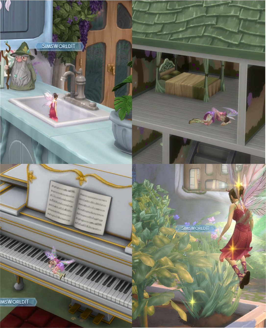 Come ogni fata che si rispetti, anche quelle di The Sims 4 possiedono il potere di miniaturizzarsi in certe occasioni. Lo fanno esclusivamente mentre influenzano gli altri Sims e presso alcuni oggetti, in particolare: