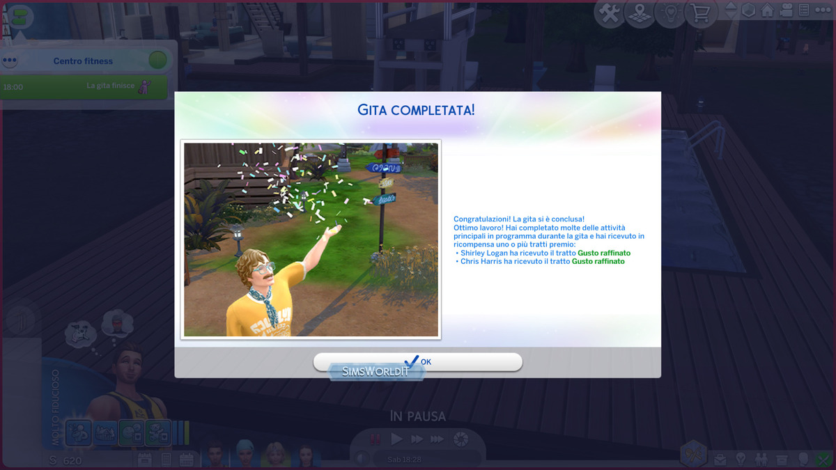 È vero, le gite si possono estendere quante volte lo si vuole usando il telefono o l’interfaccia in alto a sinistra. Tutto però ha un epilogo, e scattata l’ora finale del giorno finale, il soggiorno giungerà alla sua conclusione (a meno che non lo si prolunghi in extremis). Se i Sims sono stati particolarmente diligenti nel completare le attività principali previste dalla gita, è possibile che ricevano dei tratti ricompensa a testimonianza dell’esperienza.
