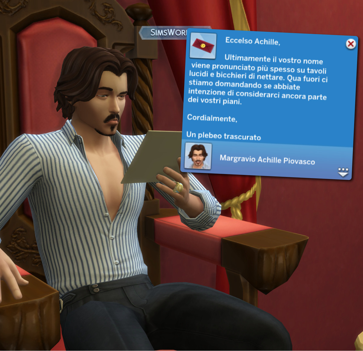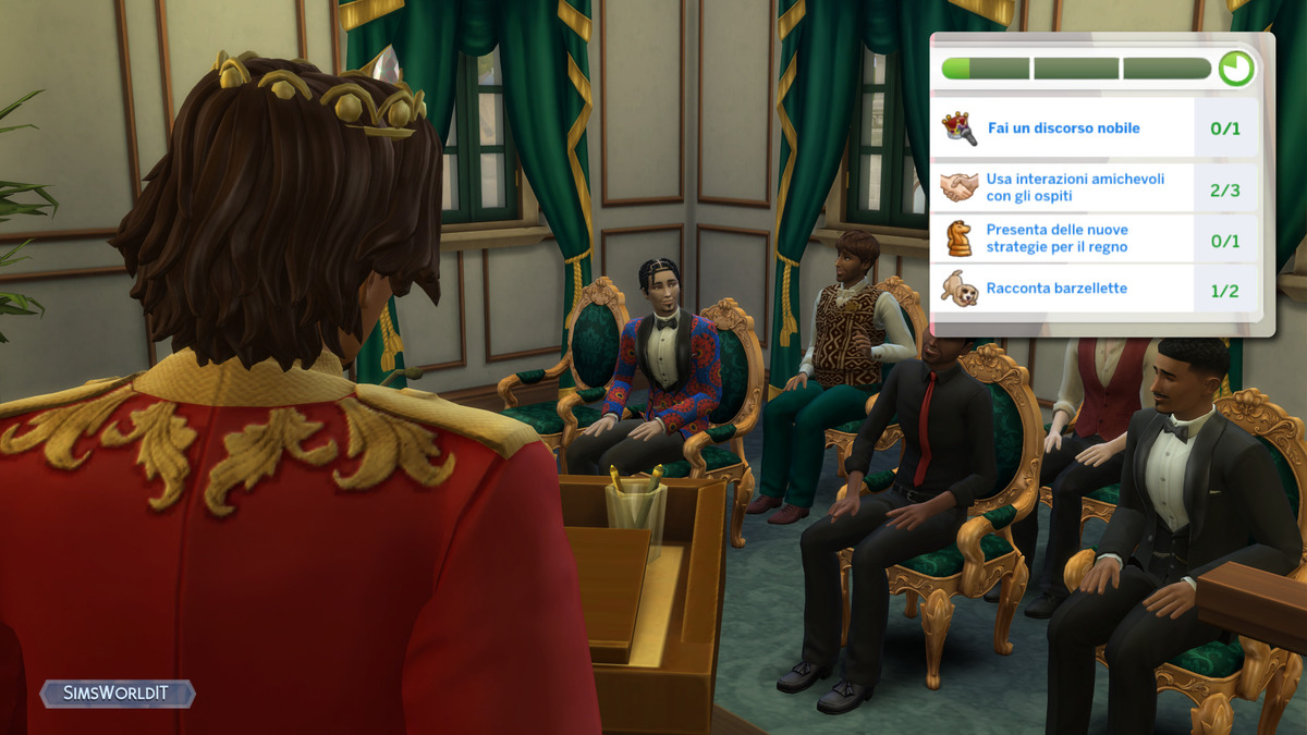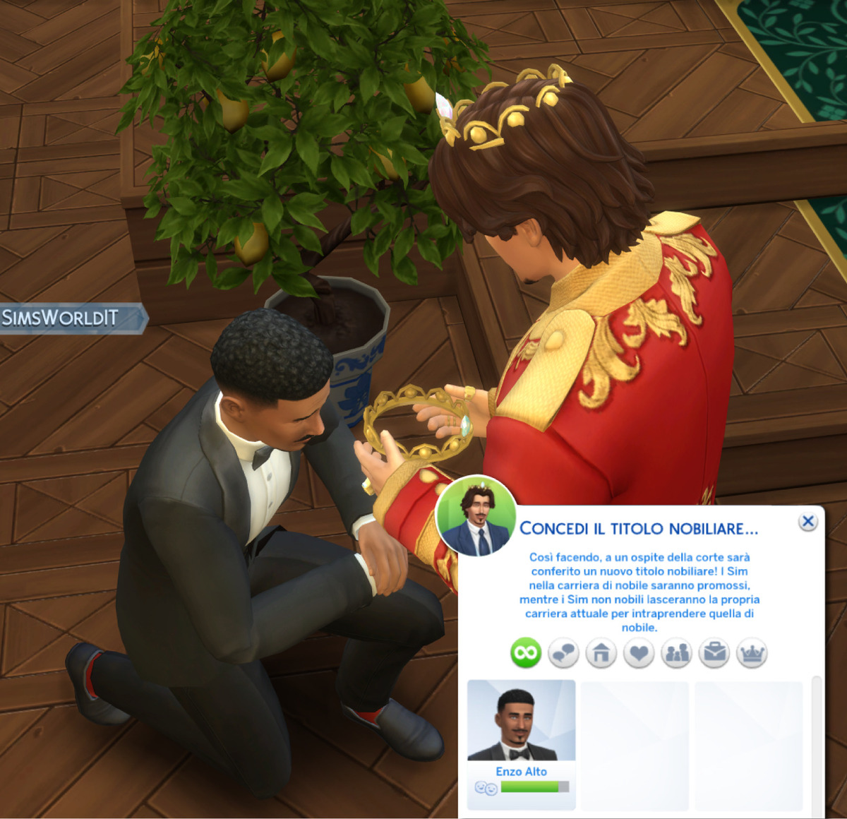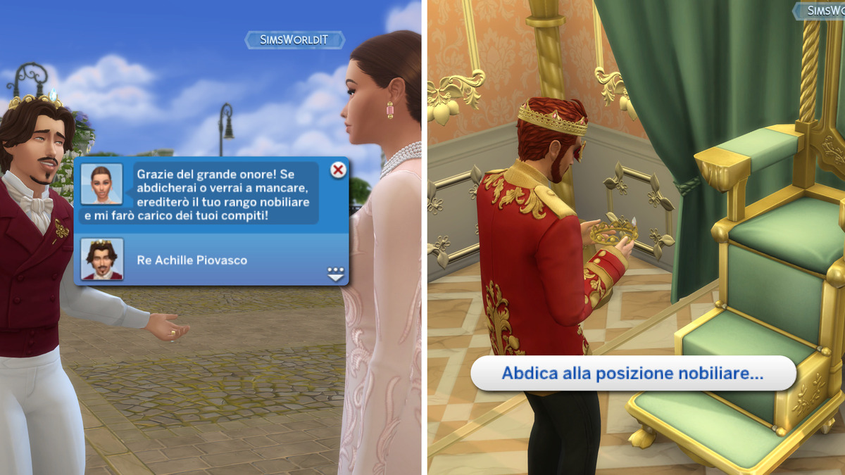 Tramite discorso d’incoronazione. Anche questa scelta è disponibile solo durante una seduta di corte. Il Sim acquisirà il titolo nobiliare successivo al termine di un discorso fatto davanti alla platea.