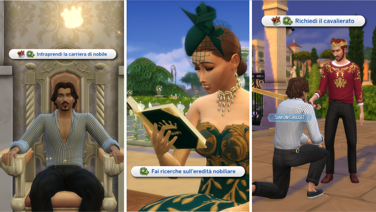I Sims devono unirsi alla carriera di nobile affinché possano infine assumere la carica di monarca, corrispondente al livello massimo della professione. Benché si tratti di un lavoro al pari degli altri disponibili, intraprenderlo non però è altrettanto immediato. Ci viene infatti impedito di confermare la scelta quando selezioniamo “Nobile” attraverso l’interazione “Cerca un lavoro” del telefono. Per cominciare, dovremo piuttosto seguire una fra tre strade alternative controllando un Sim che sia almeno adolescente. Queste sono: