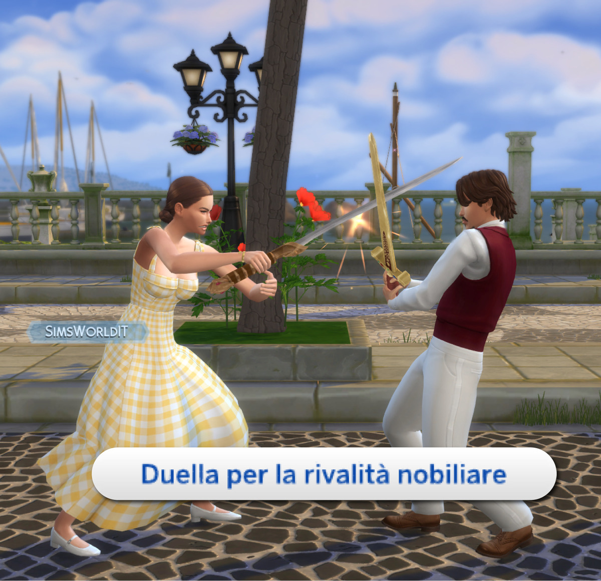 Duello. Se abbiamo raggiunto almeno il livello 6 di spada, la possiamo risolvere anche con le armi. In tal caso l’interazione da ricercare si trova nella categoria Spada → Duella per la rivalità nobiliare.