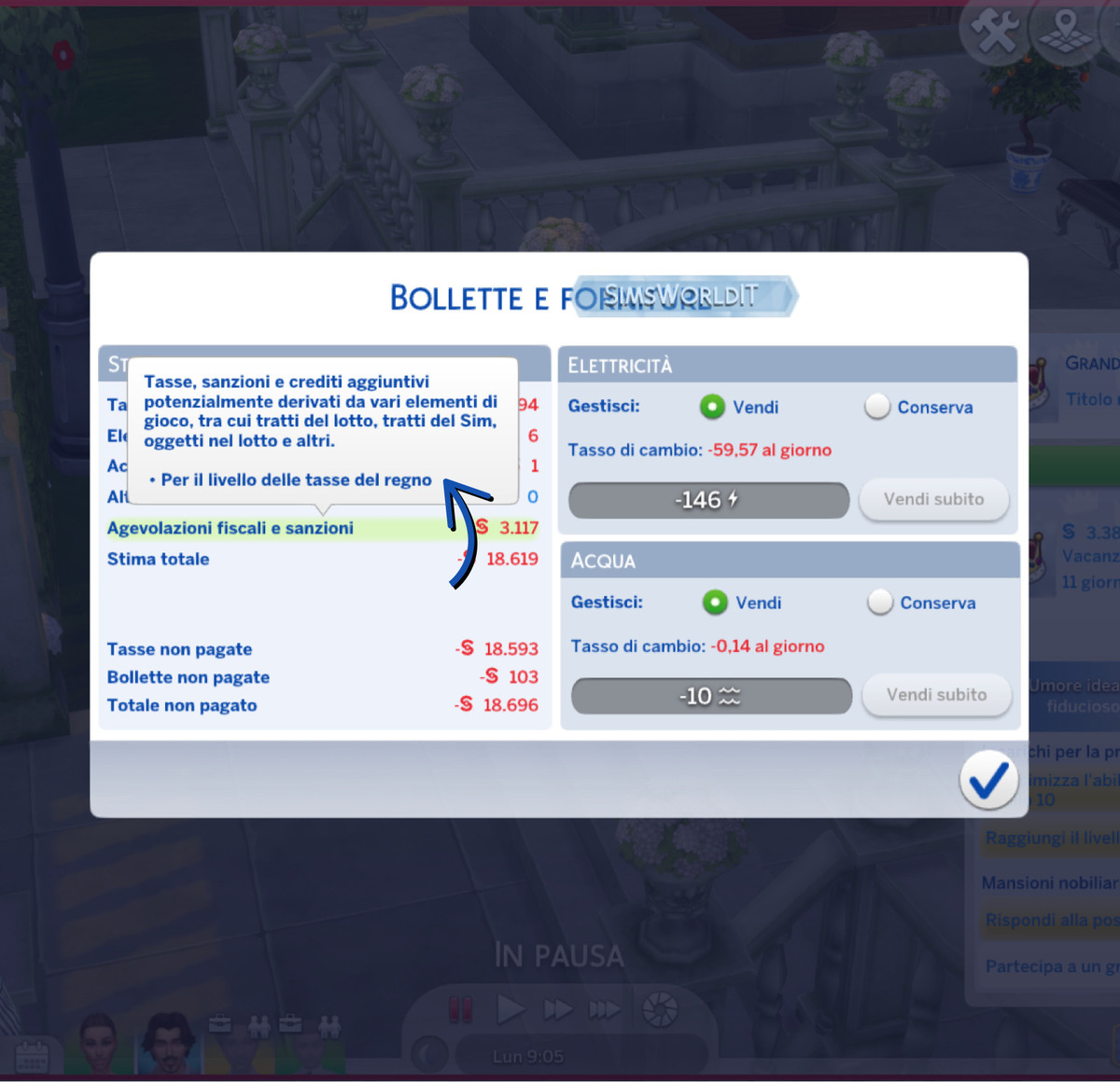 In quanto cittadini di uno scenario con un’aliquota di tasse alterata, potremo notare una dicitura a proposito nel pannello informazioni bollette (che si espande dalla cassetta postale).