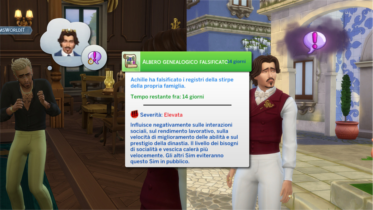I giocatori che giudicano questa dinamica come troppo invasiva possono disattivarla recandosi in Opzioni di gioco → Impostazioni del pacchetto → Sezione “Intrighi a Palazzo” e togliere la spunta a “Attiva gli scandali“. In alternativa, il tratto “Reputazione incrollabile” – che si ottiene portando a termine l’aspirazione “Burattinaio sociale” – rovescia i rapporti di forza: chi proverà a chiamarci farà subito un passo indietro dopo aver capito chi siamo, e in quel caso saremo noi a poter pretendere dei simoleon per il disturbo.