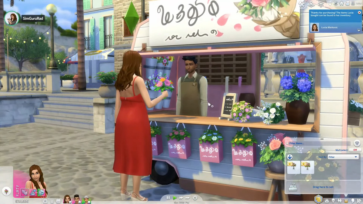 - Una volta nell’inventario, è possibile ordinare al Sim di tenere in mano il bouquet. A quel punto, cliccare in un qualsiasi punto fornirà l’opzione per lanciarlo.